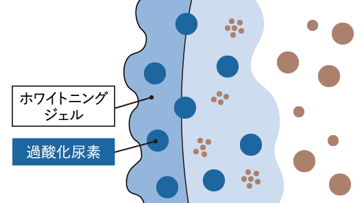 ホワイトニングジェルを塗布すると、徐々に内部まで染み込んでいき、色素を分解